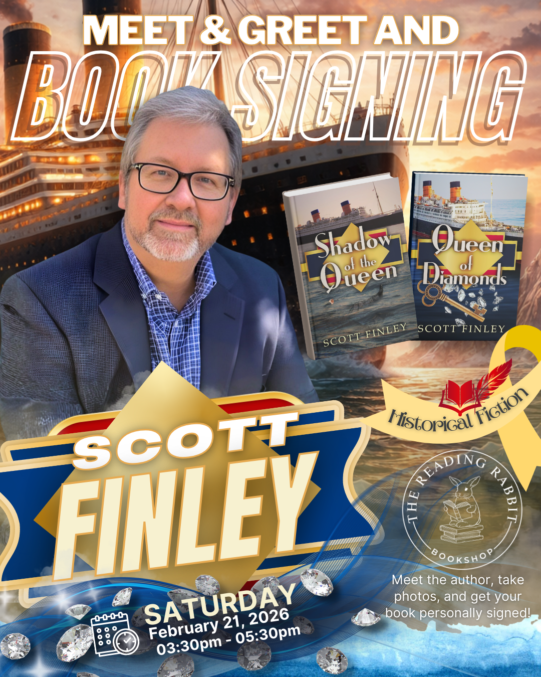 Step aboard the Queen Victoria and join us at The Reading Rabbit Bookshop as we welcome Scott Finley, author of the cozy mystery series Voyages of the Queen.